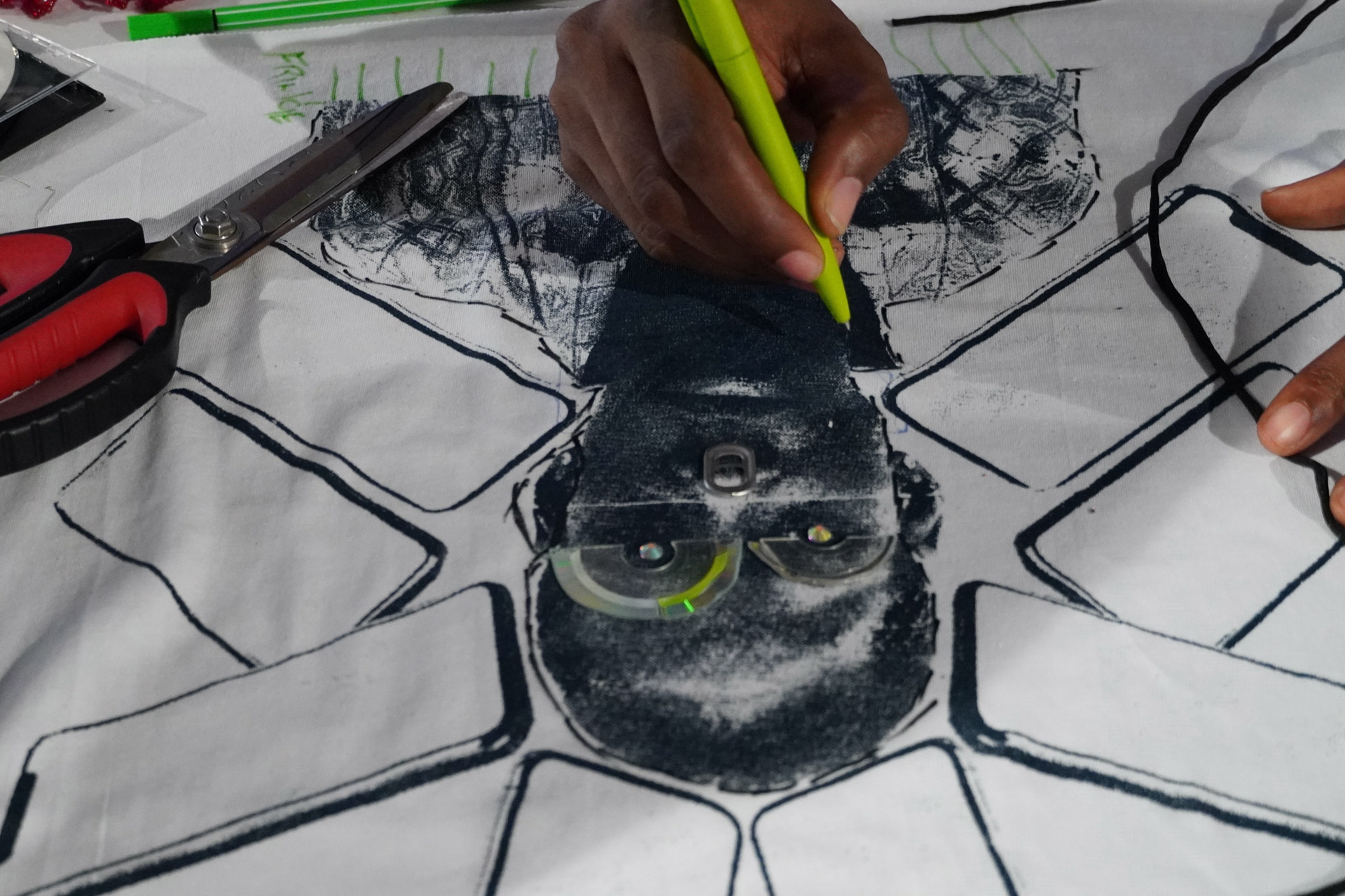 To realize «Circular Heroes», Swiss designer Rafael Kouto teamed up with Peter D. Abayomi, a dignitary from Bariga whose local initiatives focus on waste management and environmental sustainability concepts. Through several workshops, Rafael Kouto's goal was to raise awareness among young people in the community and among participants across Lagos to foster pride, recognition and visibility for their valuable contributions. For this purpose, they produced scarves in collaboration with screen printing and hand-dyeing artisans from Lagos, that are being shown together with the young protagonists within «Circular Heroes»