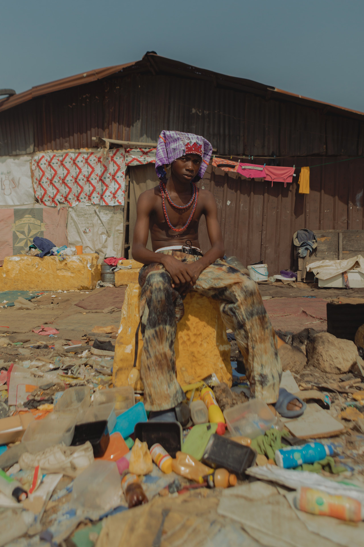 The project embodies the idea of capturing Nigerian adolescents from the coastal area of Isale Akoka in Bariga. Due to their day-to-day lifestyle, they play a key role in the circular economy. Bariga is a picturesque island and unique habitat created from the materials that surround it, most of which come from the lagoon: Waste, wooden boards, textiles, plastic, etc. Through innovative recycling and upcycling ideas, the collected objects are given a second life as landfill, building materials, electronic repairs, musical instruments or fashion. What many don't realize is that these efforts contribute significantly to the global economy.